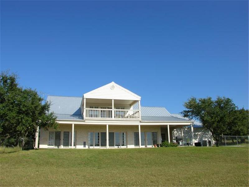 Intricate details add to the charm of this inviting 2-story home situated on approximately 7.4± acres with spectacular country views. A large island kitchen with breakfast bar & tiled backsplash give this spacious kitchen a classic feel. The archetypal flow continues into the breakfast area with brick walled fireplace & double French doors, saturating the living areas with soft-natural light. A downstairs master offers outside access to enjoy the full length covered patio. Upstairs features oversized 2nd & 3rd bedrooms, a lg. gameroom w/ built-ins + study, as well as a spacious covered balcony with hill country views for miles, horses welcomed!